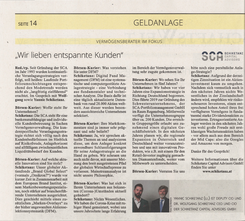 Interview mit dem Börsenkurier zum Thema der langfristigen Veranlagungsstrategie und Unternehmensausrichtung.