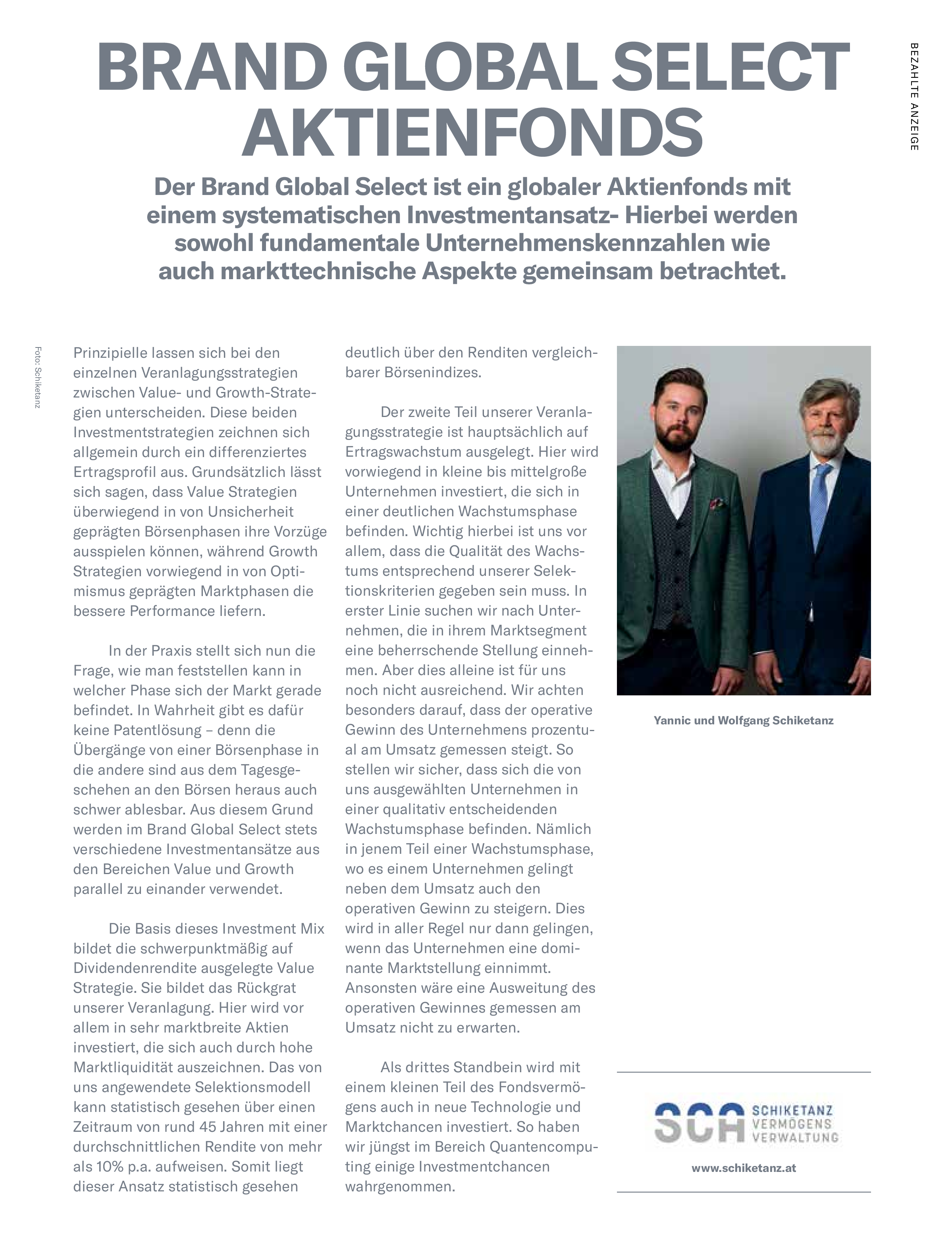 Im aktuellen Forbes-Artikel gehen Dr. Wolfgang Schiketanz und Yannic Schiketanz auf den systematischen Investmentansatz ihres eigenen Fonds, dem Brand Global Select, ein.